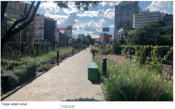 Ubicación: Viaducto presidente Miguel Alemán, Benito Juárez, CDMX Año: 2017 Proyecto: Proyecto integral a precio alzado de la primera etapa de conformación de infraestructura peatonal “Parque lineal Viaducto Colaboración: Especialista en diseño Arq. Psj. Valia Wright para Irkon Holdings Estado: Construido