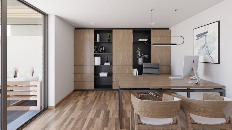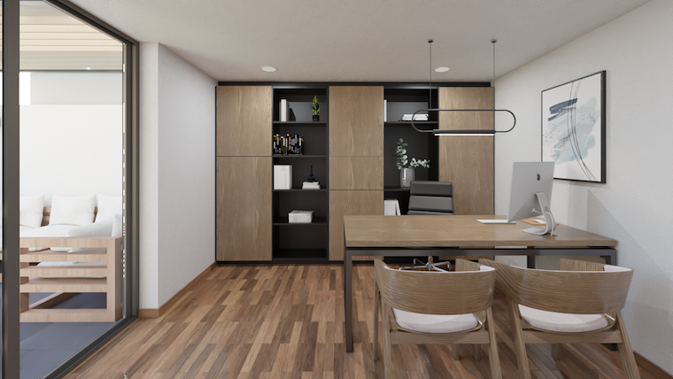 El espacio de estudio se mantuvo un ambiente sobrio con iluminación natural para la productividad del usuario en el espacio.
