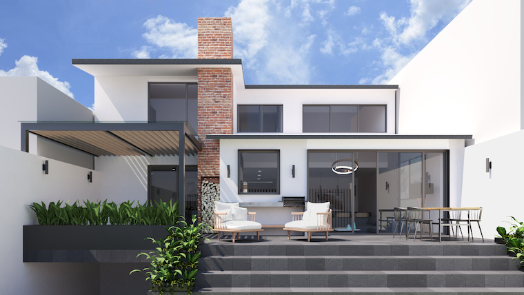 La fachada exterior y la principal se mantuvieron en tonos blancos que reflejan la iluminación, además de detalles de color en tono negro. En la terraza del patio trasero se manejaron muebles para exterior entre otros elementos para el completo disfrute del espacio.
